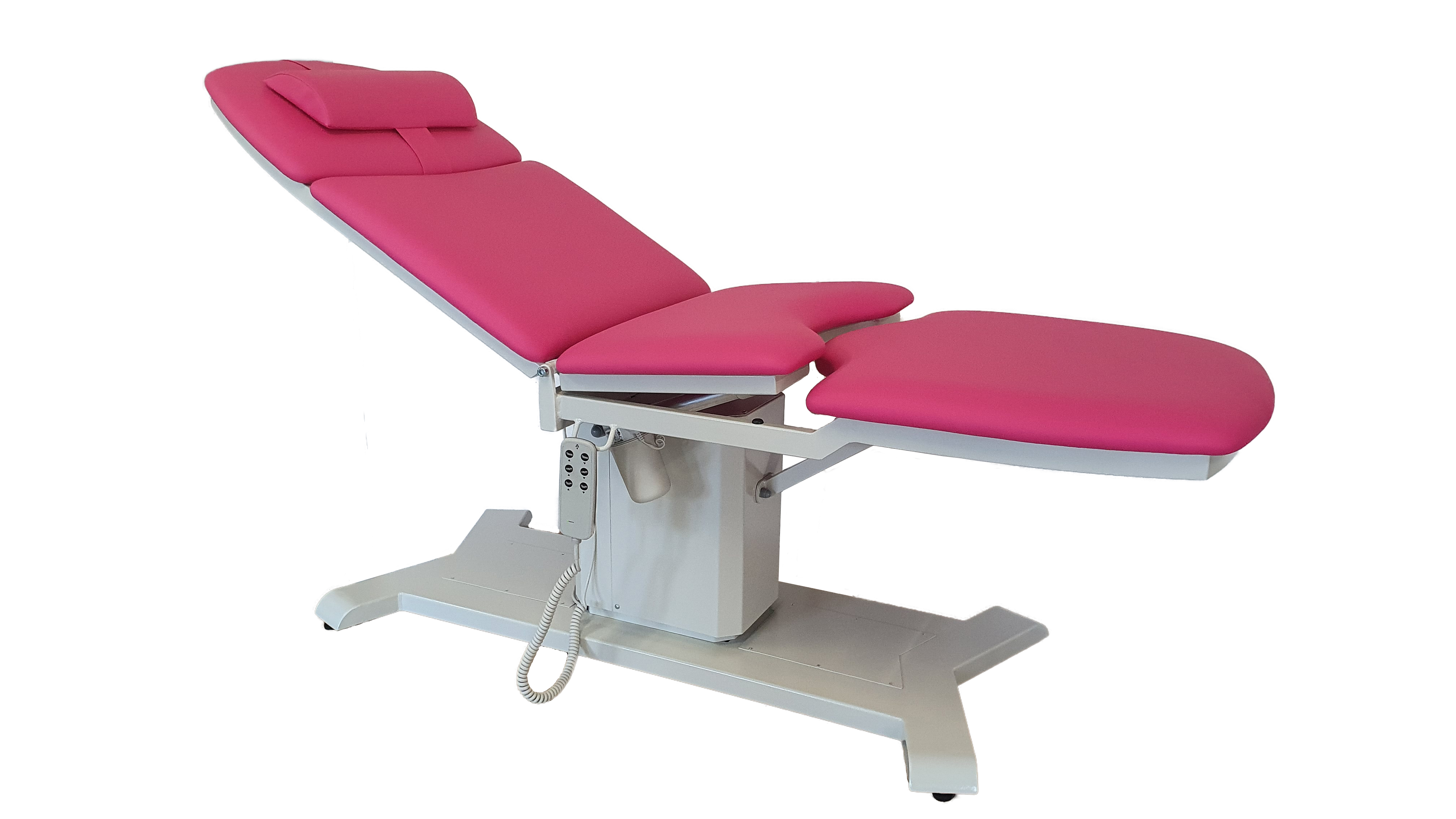 el. nastavitelná výška: 50 - 80 cm polohování zádového dílu pomocí el. pohonu: 0° do +70° polohování středového dílu pomocí el. pohonu: 0° do +30° rozměry: 197x68 cm pevná a stabilní kovová konstrukce čalounění z umývatelné a dezinfikovatelné koženky výběr barvy dle vzorníku