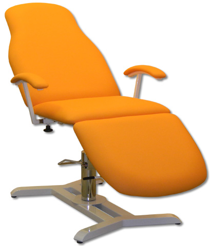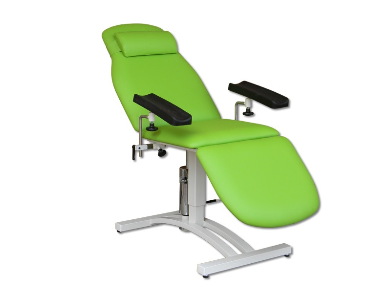 polohovatelné třídilné křeslo hydraulika pod křeslem umožňuje změnu výšky i při plném zatížení (60-73 cm) možnost plynulého nastavení pracovních poloh poloha kolmý sed, poloha vodorovná a oddechová poloha nastavení sa provádí plynule pomocí plynových pístů na sedacím a zádovém dílu a mechanicky na nožním dílu plynový píst pod zádovým dílem pomáhá při zdvihu křesla z lehu do sedu a tím zvyšuje pohodlí ovládání rozměry: šírka 60 cm (bez opěrek), délka 180 cm pevná a stabilní kovová konstrukce čalounění z umyvatelné a dezinfikovatelné koženky