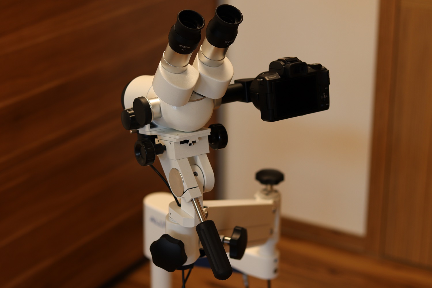 U tohoto kolposkopu se používá zcela výjimečný systém zvětšení, kontinuální zoom. To znamená, že zvětšení neprobíhá jak je běžné v krocích, ale zvětšení je plynulé až do maxima 26x.