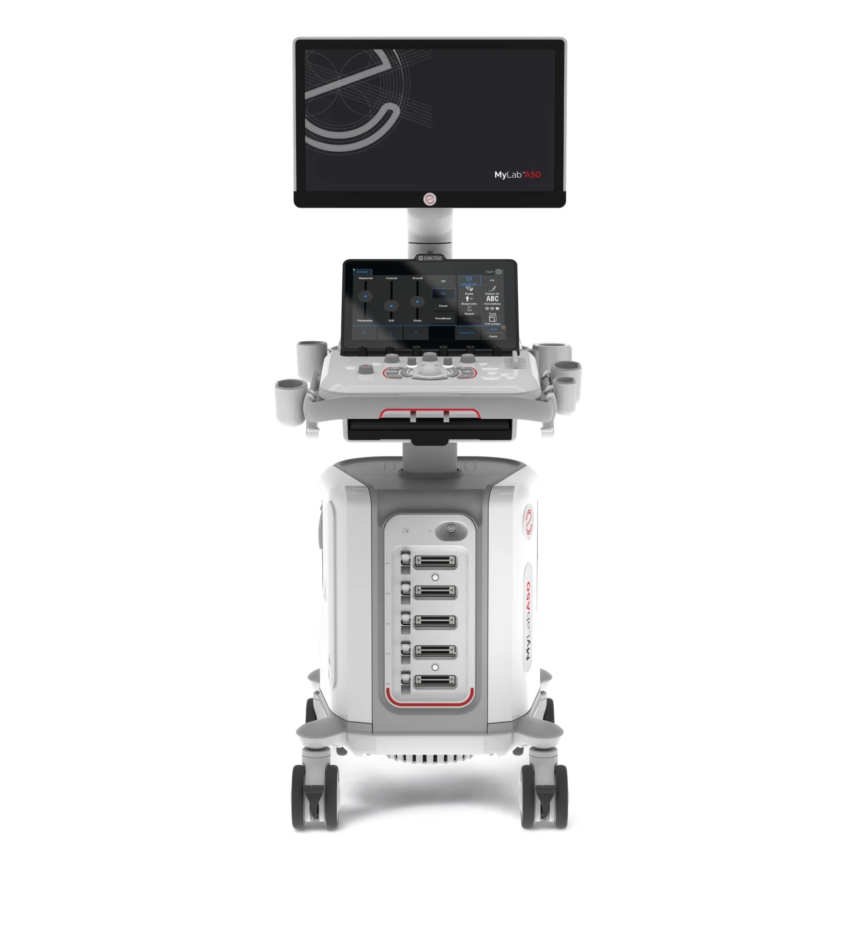 Představujeme MyLab™A50, všestranný ultrazvukový systém navržený pro intuitivní ovládání a vysoký výkon ve všech klinických podmínkách. Díky jednoduchosti intuitivního rozhraní a pracovního postupu je náš spolehlivý ultrazvukový systém navržen tak, aby zlepšil vaše pohodlí během procesu skenování. Integrované nástroje řízené umělou inteligencí fungují jako druhý pilot ve vaší každodenní rutině a pomáhají vám soustředit se na to, na čem skutečně záleží: na zdraví vašich pacientů.