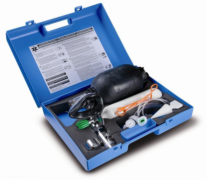 Obsahuje: • 0,5 L láhev s redukčním ventilem • dýchací vak (ambuvak) s univerzální maskou Laerdal • 3 vzduchovody • kleště na vytáhnutí jazyka • kuželovitý rozevírač úst • hadičku na kyslík. Celý set je uložený v nárazuvzdorném plastovém kufříku. Rozměry: 430x320x110 mm Hmotnost: 4,3 kg.
